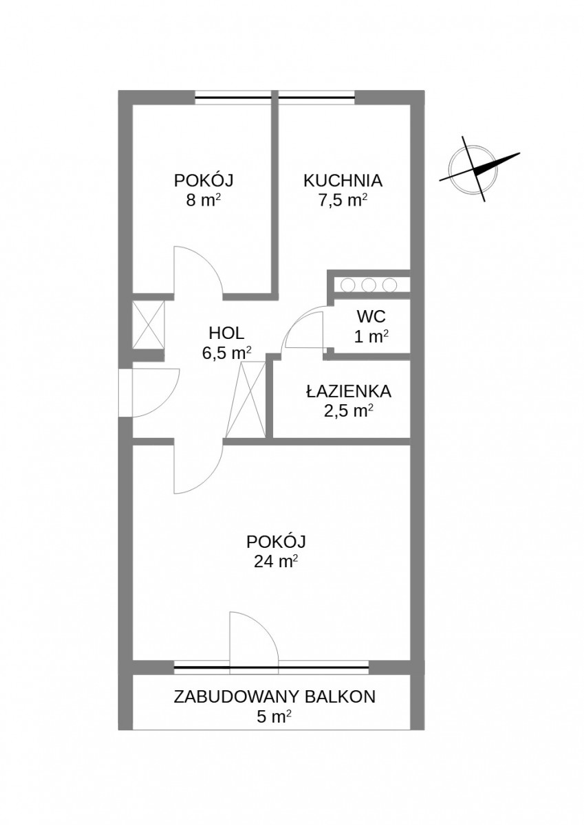 Wszystkie pomieszczenia mają niezależne wejście z przedpokoju.